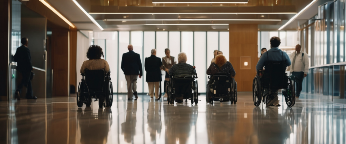 - Le handicap moteur : Nécessite des rampes d’accès, ascenseurs, portes automatiques, places de stationnement adaptées et circulatifs sans obstacles